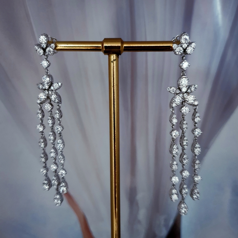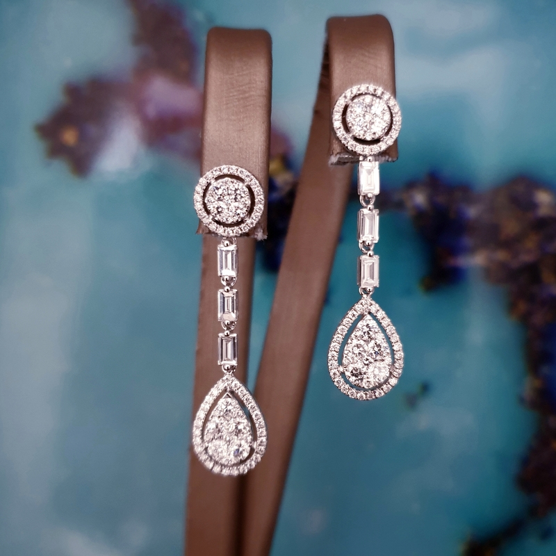 Teemant kokteilkõrvarõngad Teemant kokteilkõrvarõngad; 18k | 750 Valge kuld: 5.50 g.; Looduslikud teemandid.; Teemantide kogukaal: 4.37 karaat; Värviklass: G, H; Kuju ja lõikestiil: Ümmargune; Selgusaste: VS2, SI1; Length: 5 sm11680.00€ 5501843711680