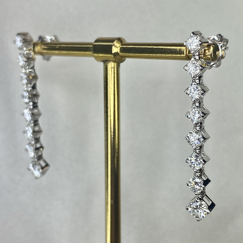 Teemantiga kõrvarõngad Teemantiga kõrvarõngad; 18k | 750 Valge kuld: 4.60 g.; Looduslikud teemandid.; Teemantide kogukaal: 1.87 karaat; Värviklass: G, H; Kuju ja lõikestiil: Ümmargune; Selgusaste: VS2, SI1; Length: 3.5 sm5280.00€ 460181875280