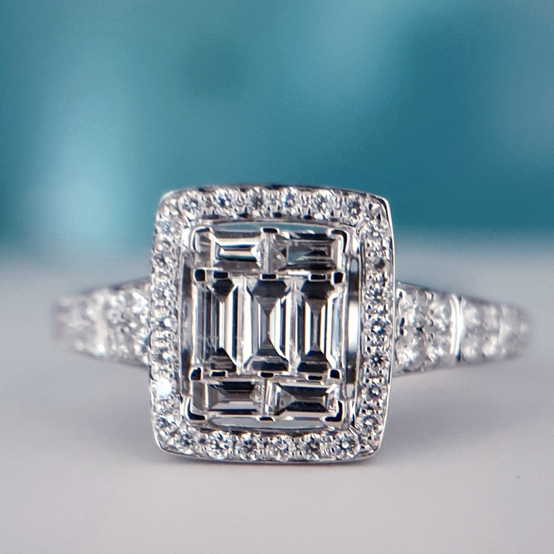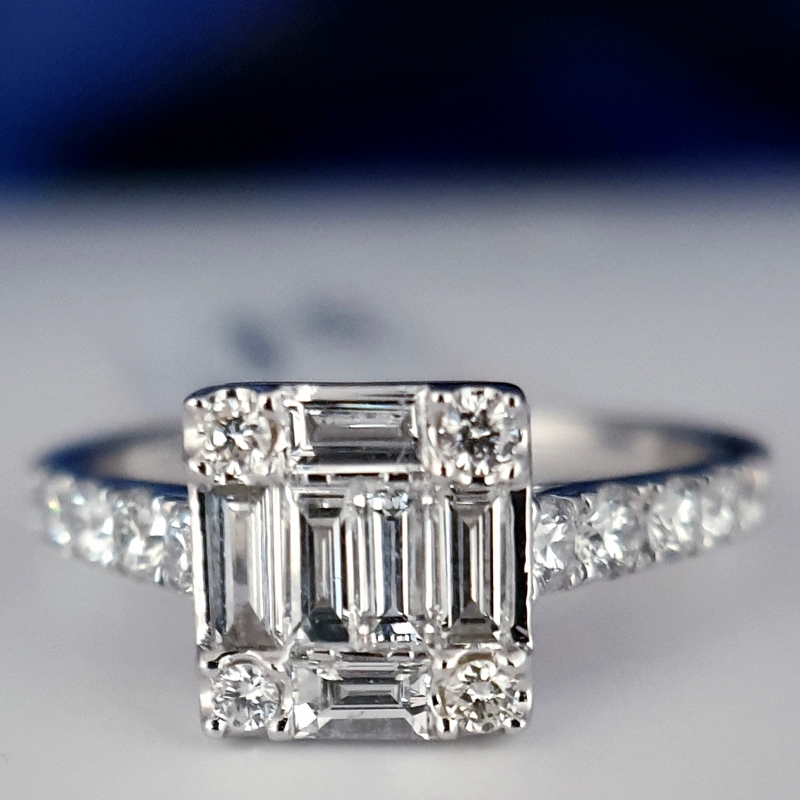 Teemantiga kokteilisõrmused Teemantiga kokteilisõrmused; 18k | 750 Valge kuld: 2.74 g.; Looduslikud teemandid.; Teemantide kogukaal: 1.00 karaat; Värviklass: G, H; Kuju ja lõikestiil: Baguette, Ümmargune; Selgusaste: VS2, SI1; Sõrmuse suurus: 16.75 mm3370.00€ 274181003370