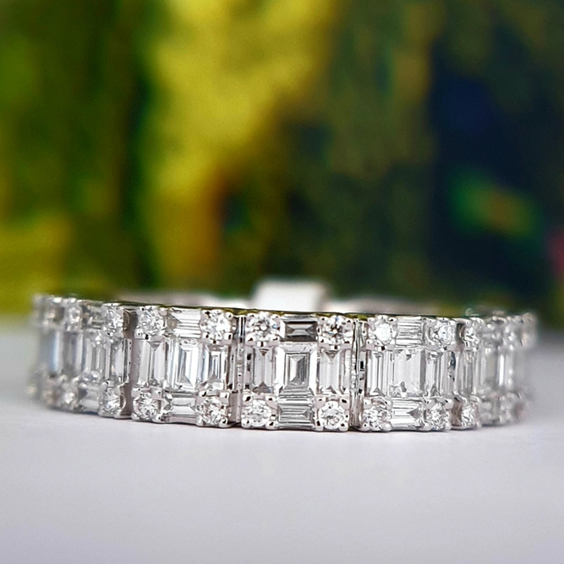 Teemant Igavikusõrmused Teemant Igavikusõrmused; 18k | 750 Valge kuld: 3.50 g.; Looduslikud teemandid.; Teemantide kogukaal: 0.68 karaat; Värviklass: G, H; Kuju ja lõikestiil: Baguette, Ümmargune; Selgusaste: VS2, SI1; Sõrmuse suurus: 16.75 mm2600.00€ 350180682600