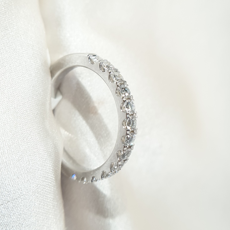 Teemant Igavikusõrmused Teemant Igavikusõrmused; 18k | 750 Valge kuld: 3.81 g.; Looduslikud teemandid.; Teemantide kogukaal: 1.25 karaat; Värviklass: G, H; Kuju ja lõikestiil: Ümmargune; Selgusaste: VS1, VS2; Sõrmuse suurus: 16.75 mm3750.00€ 381181253750
