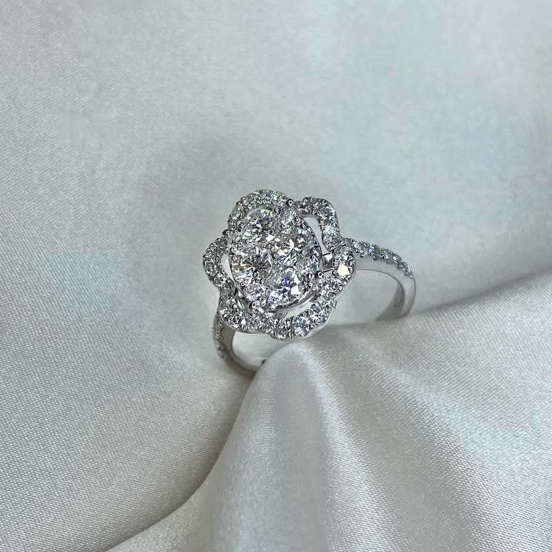 Teemantiga kokteilisõrmused Teemantiga kokteilisõrmused; 18k | 750 Valge kuld: 3.88 g.; Looduslikud teemandid.; Teemantide kogukaal: 1.40 karaat; Värviklass: G, H; Kuju ja lõikestiil: Ümmargune; Selgusaste: VS2, SI1; Sõrmuse suurus: 16.75 mm4230.00€ 388181404230