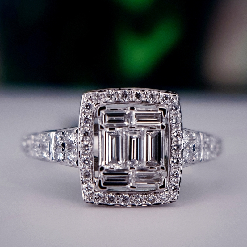 Teemantiga sõrmused Teemantiga sõrmused; 18k | 750 Valge kuld: 2.82 g.; Looduslikud teemandid.; Teemantide kogukaal: 0.97 karaat; Värviklass: G, H; Kuju ja lõikestiil: Baguette, Ümmargune; Selgusaste: VS1, SI1; Sõrmuse suurus: 16.75 mm3790.00€ 282180973790