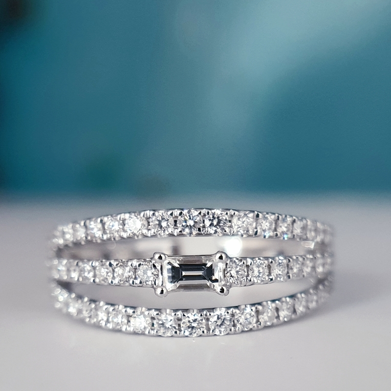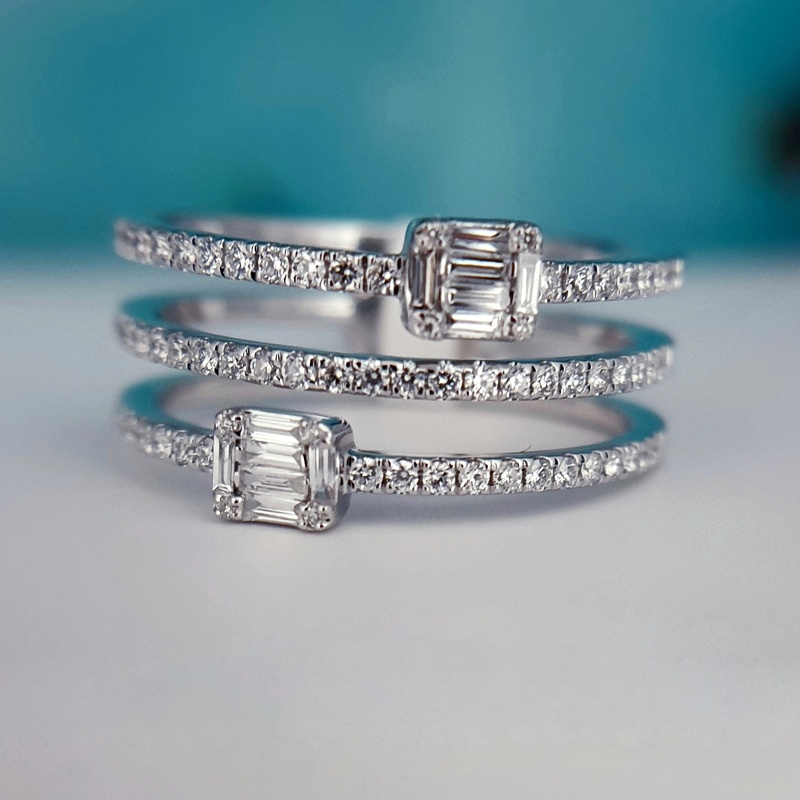 Teemantiga sõrmused Teemantiga sõrmused; 18k | 750 Valge kuld: 2.88 g.; Looduslikud teemandid.; Teemantide kogukaal: 0.59 karaat; Värviklass: G, H; Kuju ja lõikestiil: Baguette, Ümmargune; Selgusaste: VS1, SI1; Sõrmuse suurus: 16.50 mm2060.00€ 288180592060